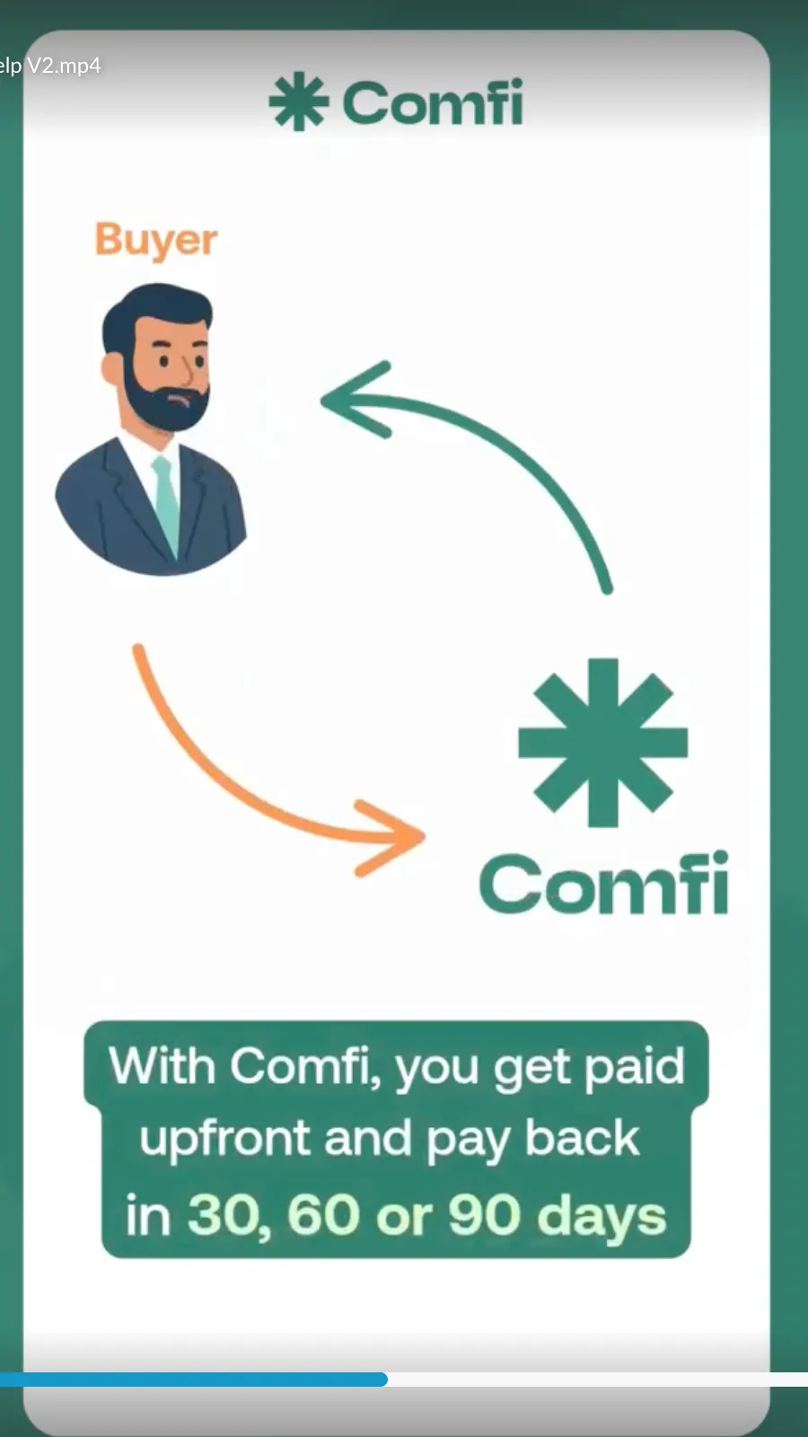 Comfi empowers SMEs with instant access to working capital through two core products: Buy Now, Pay Later (BNPL) for B2B and Invoice Discounting. We pay suppliers and service providers upfront, and their buyers or debtors pay us back later - in 30, 60, or 90 days. This means SMEs get paid immediately, avoid cash flow gaps, and can reinvest in growth without waiting months for receivables.